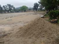 4月24日(金)に、運動場で行われた板貯水タンク内の切替機の交換工事が終了しました。貯水タンクの表面を埋めるために使用したサバ土(別名:真砂土(まさ土) 主に西日本で花崗岩が風化して砂状になった土のことで、水はけが良く、適度な締め固まりやすさをもつ土)の残りを、施工業者さんのご厚意により、小学校にいただくことがができました。運動会に向けて、運動場のトラックの走路に使うことができます。ありがとうございました。