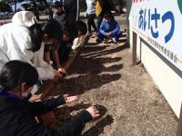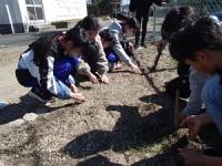 3月12日(木)の昼休みの時間に、6年生児童は、地域の方からいただいた白たんぽぽの種、職員が家から持ってきたヒマワリの種、「はるかのひまわりの種」を職員室南側花壇、北校舎西側花壇、旧鳥小屋東側花壇に蒔きました。6年生児童たちが蒔いた種から芽が出て、花を咲かせる時期が来るのを楽しみにしています。はるかのひまわりの種についてご説明します。阪神・淡路大震災で亡くなった当時小学6年生の加藤はるかさんの自宅跡地に咲いたひまわりは「はるかのひまわり」と呼ばれ、復興のシンボルとして全国に広まりました。命の尊さと震災の記憶を伝えるため、毎年全国の被災地や学校で種が引き継がれ、育てられています。