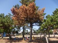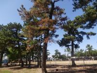 昨年度、泉小学校校地内の松の木が枯れてしまい、田原市役所 農政課に依頼し、2本の松の木を切り倒していただきました。本年度も、松の木の消毒は行ったのですが、約10 本の松の木が枯れた状態にあり、農政課に撤去を依頼しました。残念ではありますが、安全のことを考えると仕方ありません。冬頃に撤去していただけるとのことです。