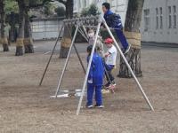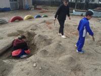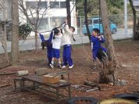 2月26日(火)の2時間目後の休み時間(15分間)には、たくさんの児童たちが運動場に出て活動しています。昨日までの雨のため、運動場の状態はよくなかったですが、サッカー、ドッジボール、鬼ごっこなどで体を動かしている児童がいます。また、ブランコをしたり砂場で遊んだりしている児童もいます。木の枝、松の葉、切り株、古タイヤ、ロープなどを活用して遊んでいる児童もいます。学年が混じって一緒に遊ぶ姿もたくさんあります。また、教職員も外に出て児童たちと一緒に遊んでいます。