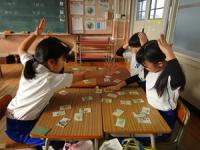 1月13日(火)の国語の学習の一環で、学級内でカルタ大会を行いました。お正月の「カルタ」は、百人一首やいろはかるたが定番です。今回は、「いろはカルタ」を使って、カルタ大会をしました。カルタのよさは、遊びながら「国語力・記憶力・集中力・反射神経」などの知育効果を高め、「ことわざ・歴史・文化」を楽しく学べる点にあります。また、児童たちは、「いろはかるた」で教訓を学ぶことができます。児童たちは、ルールを守り、楽しくカルタ取りに熱中していました。