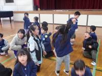 2月9日(月)に、4月から入学予定の園児とその保護者にご来校いただき、入学説明会・体験活動を行いました。保護者への説明の間、5年生児童が、園児と体験活動を行いました。レクリエーション(「だるまさんが転んだ」「進化じゃんけん」)、校内見学などを行い、園児が5年生児童とふれあう時間を過ごしました。また、5年生児童は、ランドセルとカエルの折り紙、手紙をラッピングしたプレゼント作り、新入学児一人一人に手渡しました。新入学児を迎える心あたたまる活動となりました。4月から最上級生となる5年生児童たちから、「楽しかった」「かわいかった」などの感想が聞こえ、充実した活動が行われたことが表情からも伝わりました。