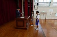 9月30日(火)に、後期児童会役員認証式を行いました。2名の役員が選出されました。児童会副会長は「みんなが過ごしやすくなる学校にしていきたい」という決意を全校児童に向けて述べました。また、前期児童会役員それぞれからも全校児童に向けてのメッセージや役員を終えての感想などが述べられました。今後は、2名の役員を中心にオール泉小で、学校を盛り上げていきます。