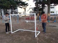 12月18日(木)に、CS環境整備を行いました。校舎に設置してある大時計の裏側に鳥の巣があることを太田さんに発見していただき、渡辺さんと一緒に鳥の巣の除去、大時計の設置の補修を行っていただきました。その後は、ミニサッカーゴールの設置を行っていただきました。鈴木さん、大久保さんも加勢していただき、サッカーゴールの設置を行いました。また、渡辺さんから菊の花をいただき、校内に飾らせていただきました。