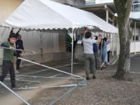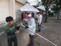 10月27日(月)に、泉校区コミュニティ協議会より依頼があり、泉市民館まつりで使用したテントの片づけを行いました。校区長さんに加え、大久保さん、前川さん、渡辺さんらとともに教職員も一緒になって4針のテントの片付けを行いました。テントの片付け後には、鈴木さんも加わり、紐や旗が絡まった万国旗の片付けも行っていただきました。