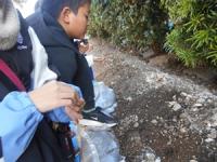 11月26日(水)のクラブの時間に、ふるさと探検クラブの児童たちは、伊川津貝塚の発掘調査の見学に出かけました。地層には、縄文時代の貝殻や犬の骨などが埋まっており、発掘されていた方から動物の骨が埋まっていることを教えてもらいました。また、学芸員の増山さんが、児童たちが縄文時代の土器、矢じりなどを手に取って触れるように、事前にトレーに取り出しておいてくださいました。世界的にも有名な伊川津貝塚の発掘調査の現場を見ることができ、児童たちは貴重な体験をしました。
