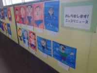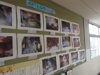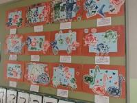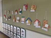 各教室前の廊下や掲示板に、図画工作や生活科の学習で児童が作成した作品が展示や掲示がされています。工作作品、版画などの作品です。コメントに、工夫したところ、うまくいったところなどの記載が添付されている作品も多くあります。