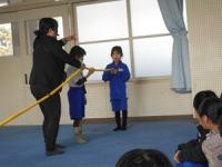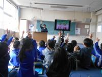 2月16日(月)に、1年生は保健教育の一環で、(株)東三河ヤクルト販売 小原見佳 氏 を講師にお招きし、「おなか元気教室」をテーマに出前授業を行っていただきました。模型を使って、おなかの仕組みを学んだり、DVDを視聴し、おなかの仕組みを知ったりしました。「おなか博士」を目指して、楽しく学習することができました。また。「ヤクルトくん」も登場し、児童たちは大喜びでした。給食時には、お土産として「ヤクルト1000」をいただき、みんなで飲み、児童たちにとって、充実した機会となりました。