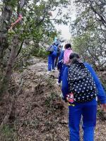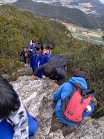 3月9日(月)に、6年生児童は、卒業遠足で雨乞山に登りました。地域の鈴木さんにガイドをしていただきました。山の斜面は急な個所も多く、四つん這いになって登ったり、お互いで手を貸し合いながら協力して登ったりしました。今日は天気もよく、山頂からの景色は絶景でした。自分たちの住んでいる地域にこんなに素晴らしい場所があることをたくさんの児童たちは実感しました。また、卒業後も、困難に負けずに生きていこうという決意をもちました。