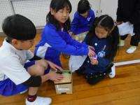 1月22日(木)に1年生児童は、生活科「おもちゃまつり」の授業の一環で、自分たちで作ったおもちゃで保育園児に遊び方を説明し、おもちゃで遊んでもらう活動を行いました。泉保育園の青組の園児12名に来校してもらい、1年生児童と交流しました。おもちゃは、1年生児童が、まつぼっくり、どんぐり、くるみなど秋の自然物を使って作りました。1年生児童は、保育園児との交流で、人と関わる力、人に伝える力の育成を目指して取り組みました。1年生児童は、学級で協力して、保育園児に楽しんでもらおうという目的のために団結し、それぞれの児童が、学級の一体感を感じることができました。1年生児童のいきいきとした姿、たのもしい姿などを見ることができ、成長を感じることができた時間となりました。
