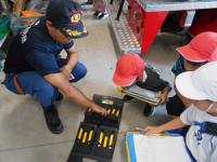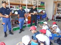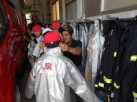 10月6日(月)に、3年生児童は、総合的な学習の時間に、泉消防団、防災倉庫の見学に出かけました。i泉地区の調べてみたい場所を児童から聞き取り、実際に施設を訪問し、ご説明やお話を聞き、泉地区への理解を深めることを目的に行っています。泉消防団の方々から、施設や消防設備についての説明を聞いたり、消防用防火服を実際に着用させていただいたりしました。児童たちは、みなさんのために働く消防団を身近に感じることができました。