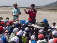 10月7日(火)に、4年生児童は、赤羽根漁港港湾出口付近の海岸へ出かけました。海岸清掃や地引き網体験を通じて、地域の自然に親しみながら、自然や海洋生物の大切さを学び、自然愛を育むことを目的に行いました。また、赤羽根中学校区の小学校児童や赤羽根中学校の生徒とも関わり、人間関係の構築やコミュニケーション能力の育成も目指して取り組みました。午前中は、海岸清掃と地引き網を行いました。参加者全員で協力し、地引き網の綱を引き、たくさんの海の生き物を採ることができました。児童たちにとって、貴重な体験となりました。