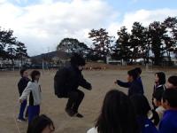 1月22日(木)のすらすらタイム(朝の学習の時間)に、たてわり班で、長縄とびの練習を行いました。体育委員の号令での準備体操後、各班ごとに練習しました。つかえてしまったり、跳べない児童を高学年の児童が、後ろから押してあげたり、ジャンプする位置を教えてあげたり、協力して取り組む姿がたくさんあり、とても心があたたかくなりました。練習でまったく跳べなかった1年生児童が1回跳ぶことができ、終了後に「楽しかった。もっとやりたい」と言っていたり、「今日は、2回も飛べた」と言っていた児童もいました。長縄の練習は、1/26(月)・1/29(木)・1/30(金)と、あと3日間行います。