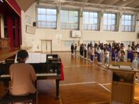 泉小学校では、毎月「今月の歌」を各学年で朝の会に歌っています。そして、月末の朝会では、1ヶ月歌ってきた歌を全校児童で歌っています。来月の歌は、「泉小学校 応援歌」です。部活動がなくなり、児童が応援歌を歌う機会もなくなった歌ではありますが、伝統を引き継いでいきたいという教職員の思いで、今月の歌に設定しました。10/28(火)の朝会では、6年生児童が、全校児童の前で歌い、応援歌を歌う意欲を高めました。