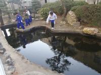 泉小学校は、豊かな自然に囲まれており、児童たちは自然にふれあうことができます。数日前には、運動場西側のの赤土山付近で、魚の死骸が骨だけになっているのを見つけ、それを笑顔で持ってきた児童がいます。とても大きな魚で、生きていれば、体長1㍍程度かもしれません。また、ひょうたん池には、体長30㎝程度のハゼが放流したあるのですが、息絶え絶えになっています。それを見つけ、「ハゼ、がんばれ」と声援を送っている児童もいます。朝、池に入った落ち葉や枝などをたも学校は、豊かな自然に囲まれており、児童たちは自然にふれあうことができます。運動場西側のの赤土山付近で、魚の死骸が骨だけになっているのを見つけ、それを笑顔で持ってきた児童がいます。とても大きな魚で、生きていれば、体長1㍍程度かもしれません。また、ひょうたん池には、体長30㎝程度のハゼが放流したあるのですが、息絶え絶えになっています。それを見つけ、「ハゼ、がんばれ」と声援を送っている児童もいます。朝、池に入った落ち葉や枝などをすくい網でとっていると、「私もお手伝いします」と申し出る児童も何人かいます。児童たちは、自然に恵まれた学校で、様々な体験や経験をして生活しています。