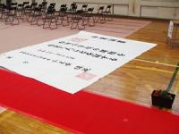 豊橋市立大清水小学校の教職員のみなさまの多大なるご支援をいただき、本校教職員で協力して作成しました。卒業生の去校見送りの後の写真撮影で活用してくれればいいなという思いで作成しました。明日は、校舎の壁に貼り付ける予定です。卒業生や保護差yのみなさまが喜んでくだされば幸いです。