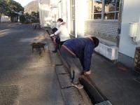 3月10日(火)に、CS環境整備を行い、太田さん、大久保さん、小笠原さん、鈴木さんにご来校いただき活動しました。北校舎北側の側溝にたまった泥の除去を行いました。また、旧鳥小屋の利活用について相談し、小屋の中にある2つの池に魚を放流し児童の遊び場になることを目指します。枯れてしまった蔓(つる)の除去、フェンスに蔦っていた蔓の除去、鳥よけのネットの除去などの作業に取り組みました。