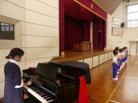 10月21日(火)の朝会で、3年生児童が「キラキラ☆泉小」の発表を行いました。学級のよいところ、4月からできるようになったことなどを発表しました。また、「メリーさんの羊」を学級担任のピアノ伴奏で、3年生児童がリコダーの合奏も披露しました。