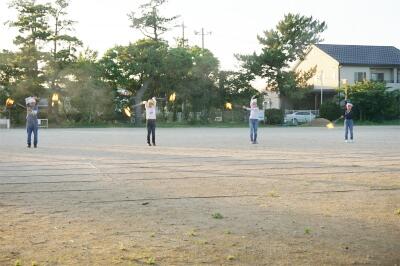 昨日の夕方、5年生が野外活動で行うトーチトワリングのリハーサルを実施しました。火をつけてのリハーサルなので、緊張気味。2つのグループに分かれて行いました。