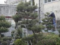 1月30日(金)に、シルバー人材派遣センターの方々に、松の木・樹木の剪定などを行っていただきました。松の木の剪定やフェニックスの枝払いなどは、教職員で行うことが難しい作業です。また、多くの樹木の剪定には、とても時間がかかります。本日は、6名の方々で作業にあたっていただき、校内環境を整備していただきました。