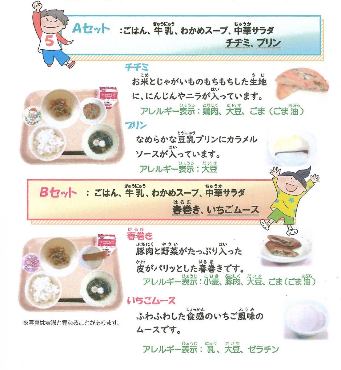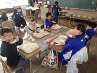 1月24日(土)から30日(金)までの1週間は「全国学校給食週間」です。1月30日(金)は、セレクト給食で、Aセット、Bセットのどちらかを希望して食べることができます。Aセット:チヂミ・プリンは26名、Bセット:春巻き・いちごムースは79名が希望し、泉小学校では、圧倒的にBセットが人気でした。どちらのセットを選んだ子も楽しく給食を食べていました。