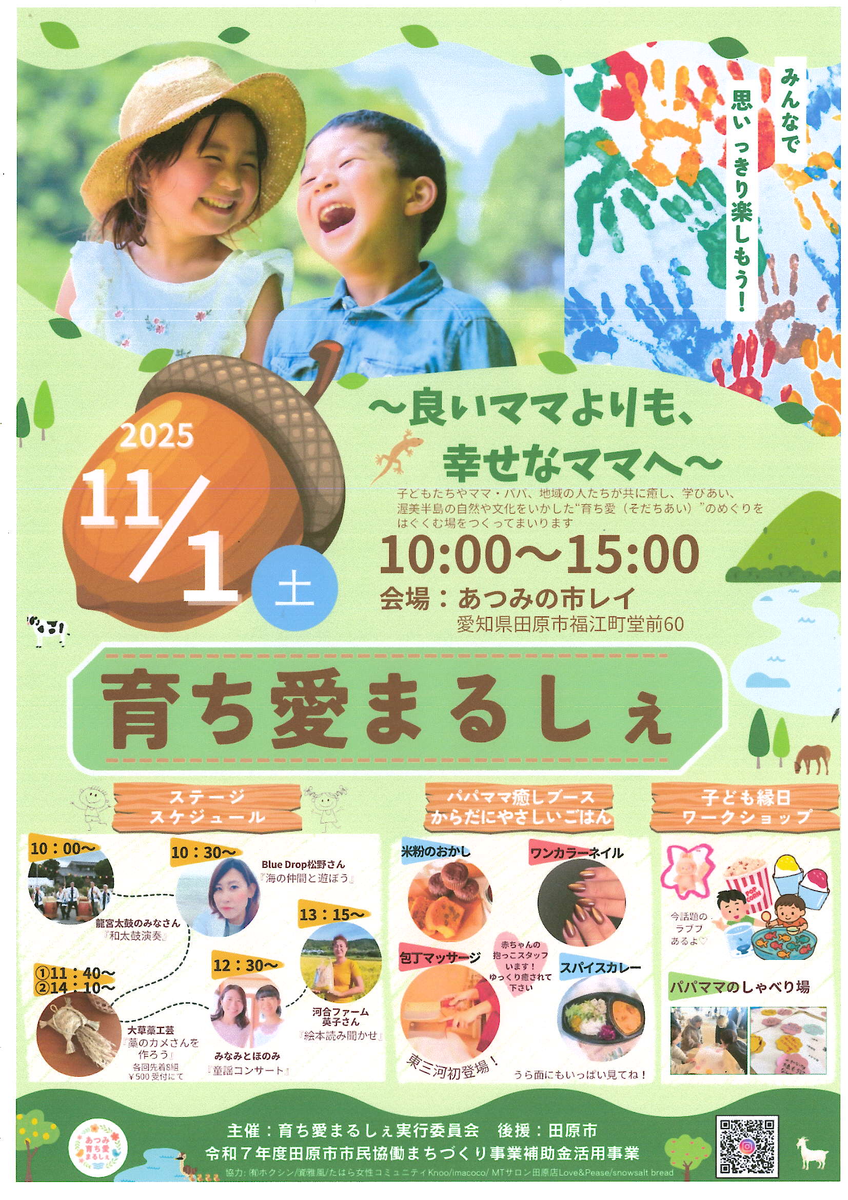 育ち愛まるしぇ実行委員会が主催する「育ち愛まるしぇ」のチラシです。11月1日(土)にあつみの市レイにて開催されます。 |
