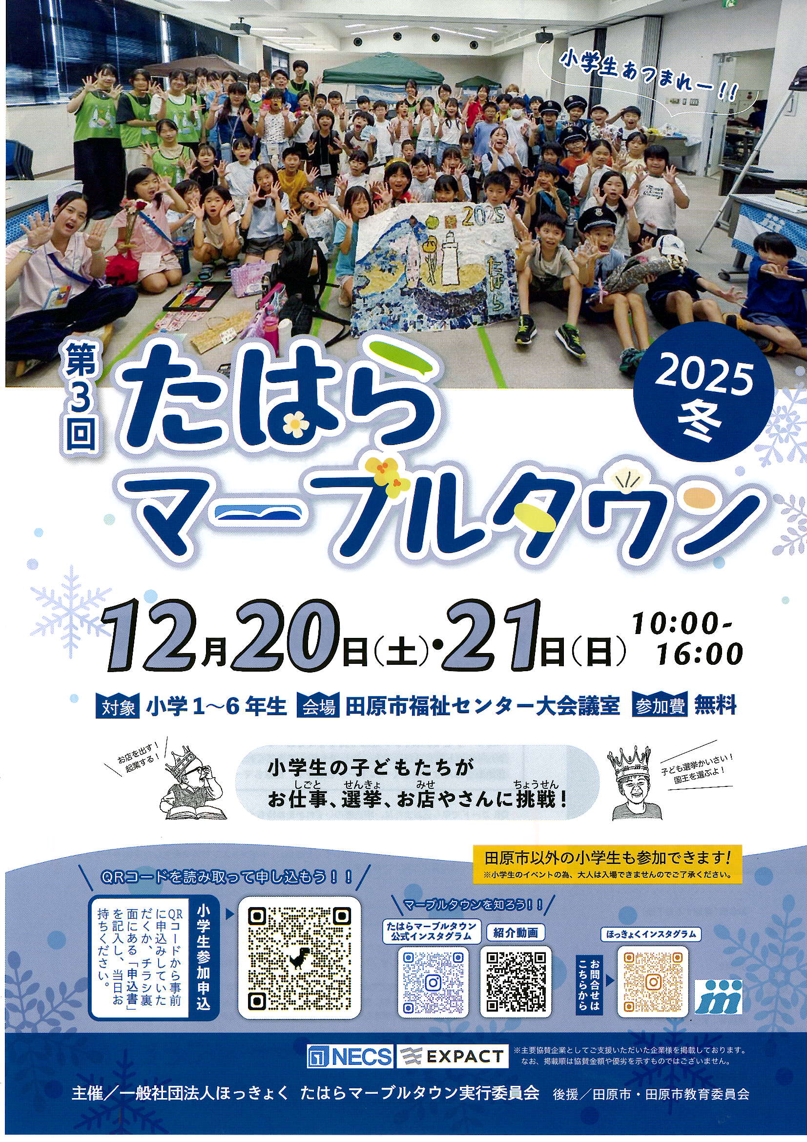 一般社団法人ほっきょくが主催する「たはらマーブルタウン」のチラシです。12月20日(土)、21日(日)に田原市福祉センターにて開催されます。 |