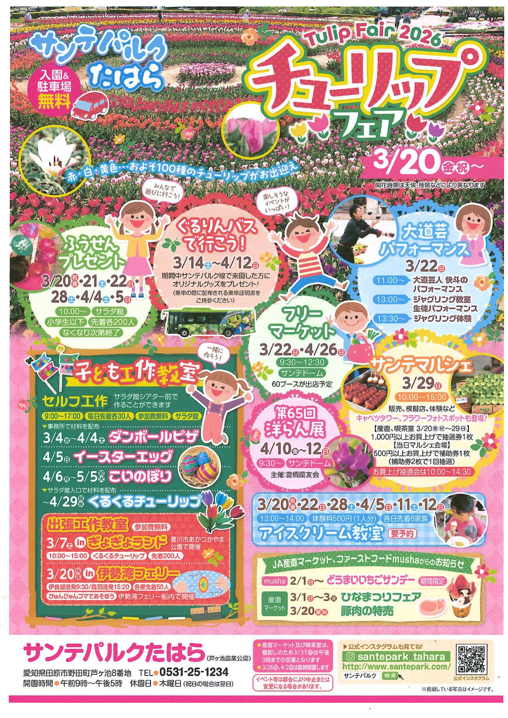 サンテパルクたはらが主催する「チューリップフェア」のチラシです。3月20日(金)から開催されます。