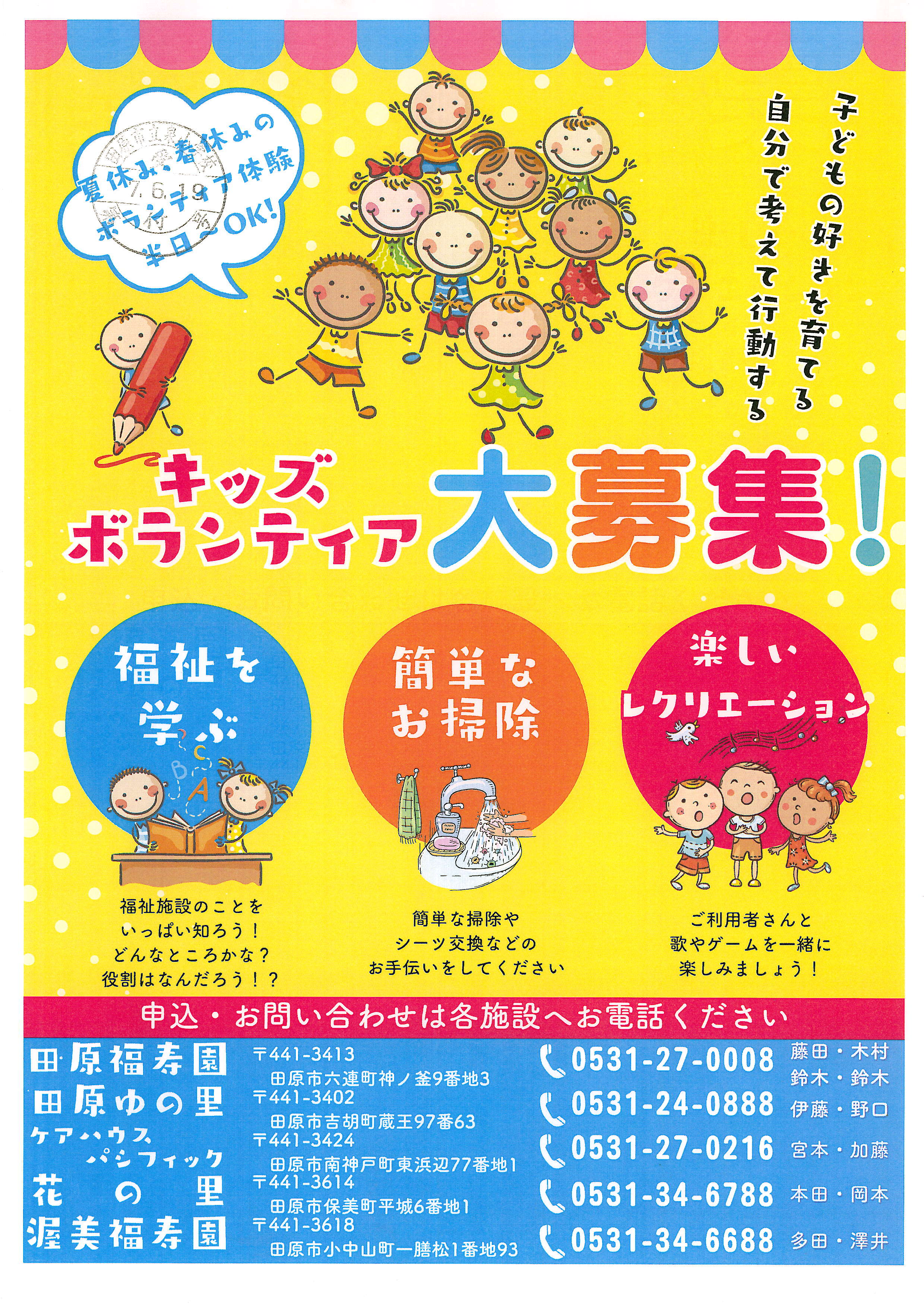 田原市の各施設が募集しているキッズボランティアのチラシです。 |