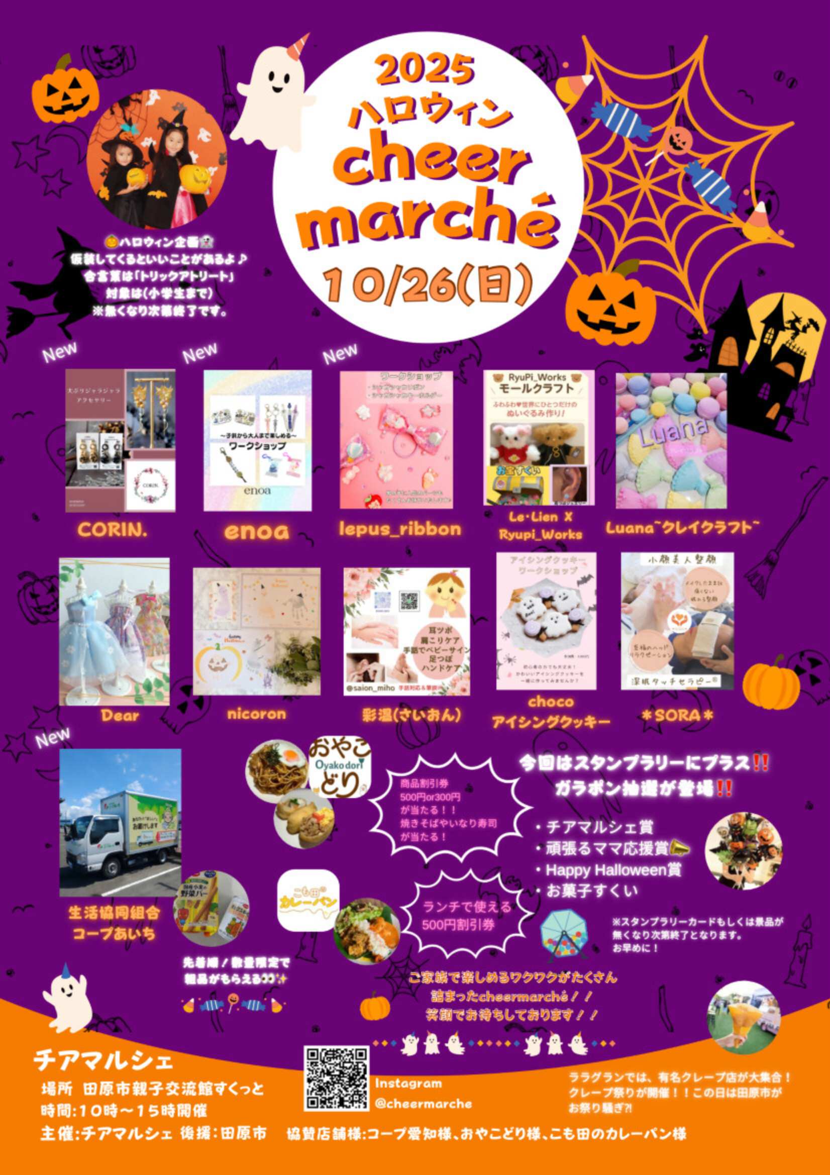 田原市親子交流館すくっとが主催する「チアマルシェ」のチラシです。10月26日(日)にすくっとにて開催されます。 |