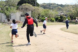 この大会に向けて、みんなでランニングタイムを行いました。一人ひとりの子ども達が、運動場を1周走ると、ランニングカードの一コマを塗りつぶしていきます。そうして、37人の子ども達と、先生たちが走った周数は、合計9575週にもなりました。1周168mで計算すると1608.6kmです。亀山小学校から北海道の旭山動物園あたりまでの距離です。みんなと一緒に頑張った経験が、子ども達の心の栄養になってくれたら嬉しいな!