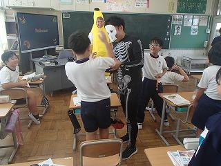 追伸:午後に5・6年生の教室を覗いてみると、バナナ先生とガイコツ先生が一緒に授業を行っていました。午後になって、おばけが増えてしまいました・・・。