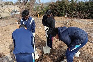 2月18日、6年生が西山植樹に出かけました。「西山の会」の方々が、苗や肥料、子ども達の名前が入ったプレートまで準備してくださり、毎年行われています。以前は、うしのけ山へ桜を植樹していましたが、植える場所がなくなり、今は、西山公民館の近くで毎年行われています。