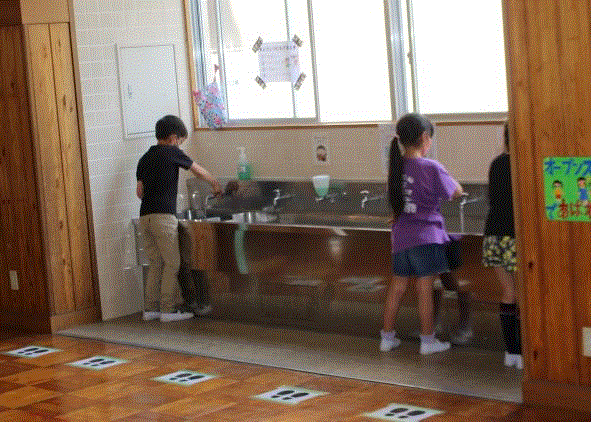 今日は、子供たちと一緒に放課終了時の動きをシミュレーションしてみました。1組と2組で時間差をつけて予鈴(1組スターウォーズの曲、2組あまちゃんの曲)を鳴らし、下駄箱に帰ってきます。下駄箱の密、手洗い場の密が、これで幾分か防げています。