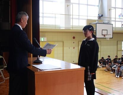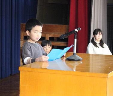 12月23日(火)午前、体育館で2学期の終業式を行いました。代表の子たちが、2学期を振り返って、学習発表会など、がんばったことや感じたことを堂々と発表しました。校長先生からは、ボランティア活動に参加する子が増えたこと、元気な歌声がたくさん聞こえてきたこと、バタフライガーデンにアサギマダラが来たことのお話がありました。式で歌った校歌もとても大きな声で元気いっぱいでした。式の後で、表彰の伝達がありました。たくさんの子が活躍していることをみんなで拍手して讃えました。よい冬休みを過ごしてください。
