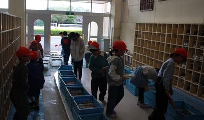 10月29日(水)午後、3年生が体育館で「どんぐりごま大会」をしました。以前に校外学習で見つけてきたどんぐりを使って、こまを作って楽しく遊びました。30人近くの地域のお年寄りの方に来ていただいて、軸となる棒を刺す穴を開けたり、回し方を教えていただいたりしました。すぐにコツをつかんで上手に長く回し続けている子もいて、体育館の中はとてもにぎやかな声であふれていました。秋らしい遊びで楽しい時間を過ごせました。来てくださった皆様、本当にありがとうございました。