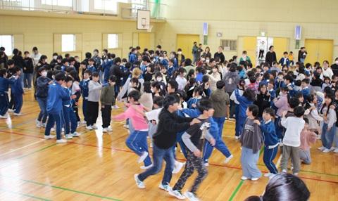 2月25日(水)昼休みに体育館で、企画委員会が計画した全校集会を行いました。全校で「じゃんけん列車」をして楽しく過ごしました。相手を見つけるまでのBGMとして「ジェンカ」を流しました。音楽や体育の時間に「ジェンカ」を習って知っている子が多く、踊りながら移動する子もいて、大いに盛り上がりました。最後に6年生の子が勝ち残りました。企画委員会のみなさん、楽しい企画をありがとう。