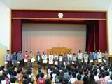 13日の月曜朝会で、音楽部の表彰がありました。先日の渥美文化会館での演奏が良かったとのことです。