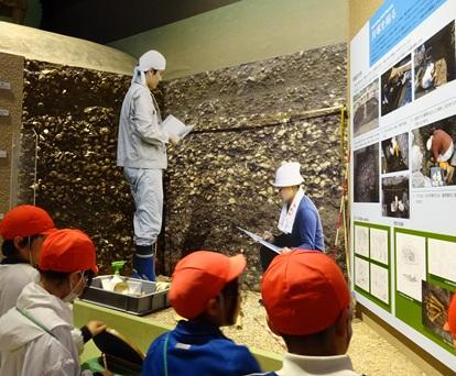 4月28日(火)午前、6年生が社会の学習で、「シェルマ吉胡」へ見学に行ってきました。貝塚史跡について施設の方の説明を聞きながら、縄文時代の人々の暮らしについて学習しました。発掘の様子や出土したものなどを見たり、火おこし体験もしたりしてきました。学校にも栄巌古墳があって、古代の人の生活には関心の高い子も多く、子どもたちは興味津々の様子でした。