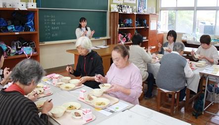 10月29日(水)、学校へボランティア活動等で来ていただいている方を対象に、給食試食会を行いました。これまで子どもたちの様子を見ていただいていますが、給食についてはあまり見ていただく機会がありませんでした。給食もかつてとは随分と変わってきているので、実際の様子を見ていただく機会として行いました。栄養教諭から、現在の給食の様子や食育について説明しました。参加された方から、食物アレルギーや給食費等について質問がありました。この日の献立は、「すいとん」「ぶりの竜田揚げ」「ごまあえ」でした。参加していただいた、ボランティアの皆様、ありがとうございました。