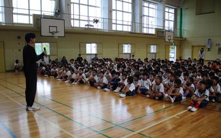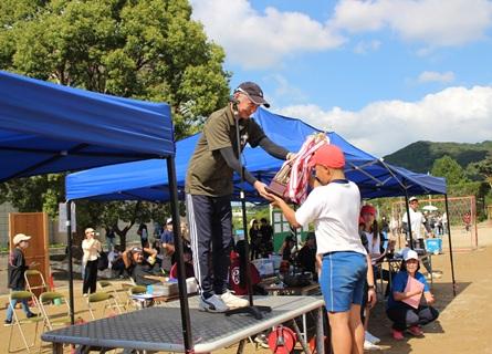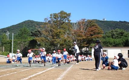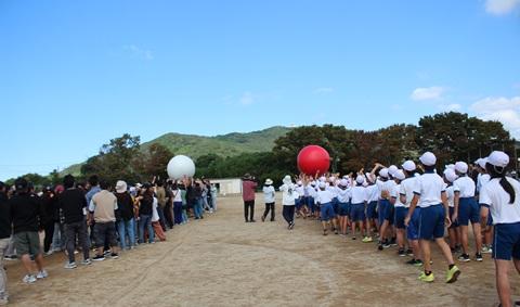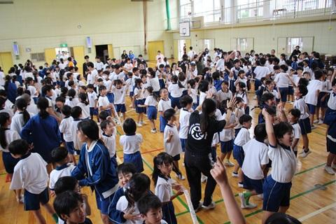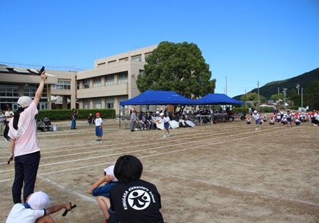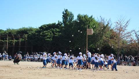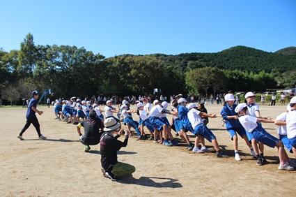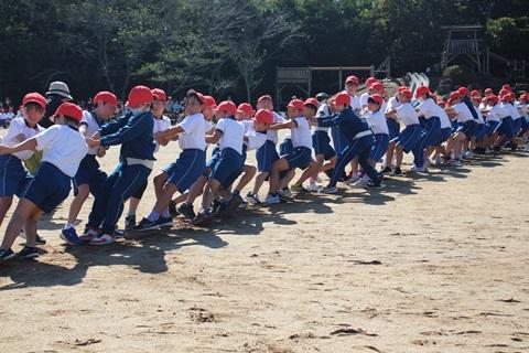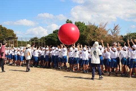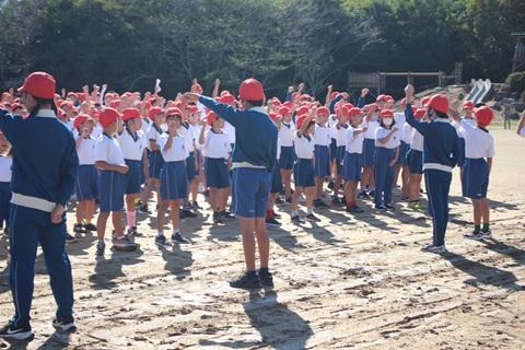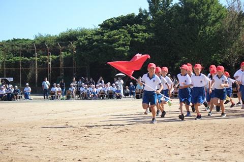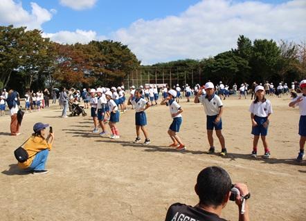 10月17日(金)午前、秋らしく晴れた空の下、昨日から延期していたスポーツフェスティバルを行いました。昨日までの雨で、グランドの状態が心配されましたが、砂を足したり整地したりして、開始を少し遅らせて実施しました。開会式の子どもたちの歌声が響き渡り、参観の保護者や地域の皆様にも子どもたちの元気が伝わったと思います。短距離走やリレー、競争遊戯で子どもたちの頑張る姿や応援の声でグランドが盛り上がりました。今年も、大玉送りでPTAチームとの対戦が行われ、こちらもたいへん盛り上がりました。ご協力いただいたPTAの皆様、本当にありがとうございました。今年の紅白対抗は、接戦の末、紅組が勝ちました。紅白どちらもよくがんばりました。遅らせて開始したため、じゃんけん大会は午後から、体育館で行いました。本日で教育実習が終了する実習生が、お別れの挨拶をしました。