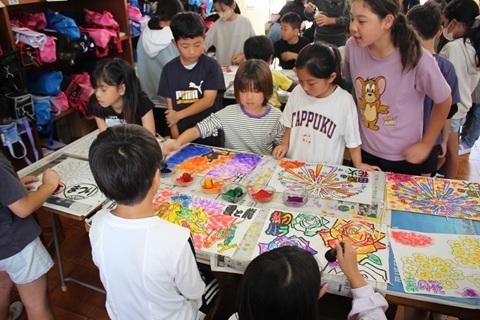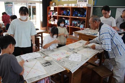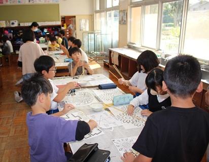 10月20日(月)午前、4年生が総合的な学習の時間に、田原凧を作りました。学級ごとに「ひごを貼り付ける作業」と「絵の色づけ」に前後半で分かれて取り組みました。子どもたちは慣れない作業に苦戦していましたが、慣れるに従って上手にできるようになっていきました。この後、出来上がった凧を体育館で上げる(屋内で滞空時間を競うカイトダンス)予定です。