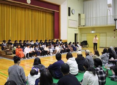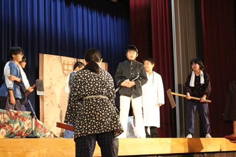 11月15日(土)午前、学習発表会を行いました。1〜5年生は、各学年・学級でのブースでの発表でしたが、6年生は、総合的な学習の時間に調べてきた「江崎巡査」についてのまとめとして、劇「江崎巡査物語」を披露しました。プロの演出家にアドバイスしていただいた6年生の子たちは、気持ちのこもったとてもよい劇を見せてくれました。江崎巡査のご遺族や田原警察の方なども招待して、参観していただきました。ご遺族の方から、子どもたちに「とても感動しました。村人の反対にあっても諦めずに説得を続けた姿や、コレラに感染して町に戻らない決断をした姿が特に心に残りました。また、6年生の子たちが、一丸となって劇を創り上げている姿にも感動しました。」とお話ししてくださいました。6年生の子どもたちも、とても気持ちの入ったよい演技ができて、とてもよかったです。
