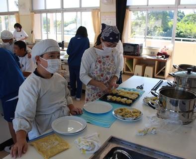 10月28日(火)午前、6年生の学級が、お楽しみ会として、スイートポテトづくりをしました。皮をむいて、切って、蒸すなどの下準備をしてから、オーブンで焼きました。皮をむくのに手こずったり、蒸すのに時間がかかったりはしましたが、だんだんと上手になってきました。マッシュしたサツマイモにプリンを練り込んだものを、それぞれ形に整えて焼きました。みんなで作ったスイートポテトは、とても美味しかったです。サツマイモは、保護者の方から寄付していただいたものです。ありがとうございました。