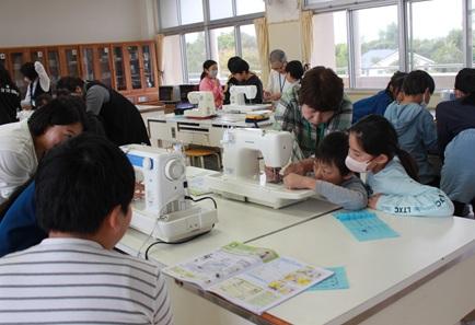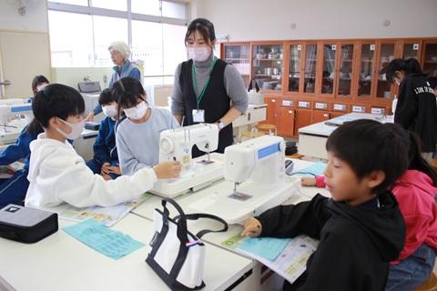 10月31日(金)午前、5年生の学級が、家庭科の学習でミシンについて授業を行いました。ミシンについての初めての授業でしたから、主に使い方や仕組みについて説明を聞きました。子どもたちは、あまり普段から見たり使ったりすることがない子が多い様子で、戸惑っているようでしたが、ミシン学習補助ボランティアの方々に丁寧に見ていただいて、慣れてきたようです。この後、5年生はテーブルクロスを、6年生はナップザックをそれぞれ作る予定です。たくさんの方に、学習補助をしていただいてとても助かっています。ボランティアの皆様、本当にありがとうございます。