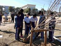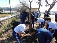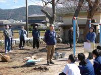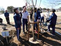 清田校区コミュニティ会長さんや4地区の自治会長さんに来ていただき、桜の木の植樹を行いました。今年は、運動場東側の大きくなって電線にかかる木と枯れて倒木の恐れのある木を切って整備した場所に、大きめの苗木を2本植えました。桜は、清田小学校のシンボルであり大事に守っていきたいというお話を、校区会長さんと校長先生からありました。何年か後には、立派な木になっていると思います。