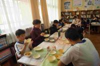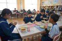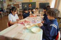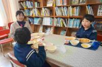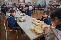 今日は、2年生と6年生のなかよし給食です。にこにこしながら楽しく給食を食べました。