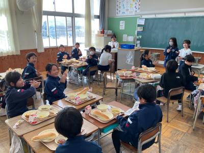 また、3年生の教室からは、「ハッピバースディ」の歌が聞こえてきます。クラスの誕生日の子をみんなでお祝いしているようです。