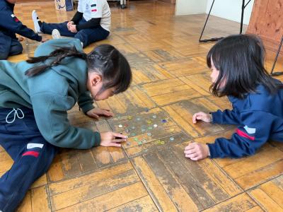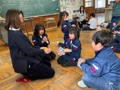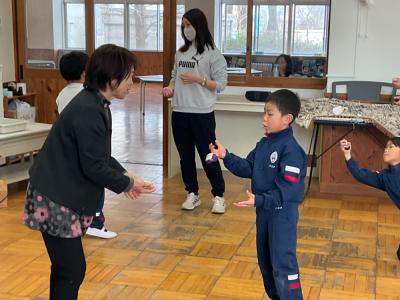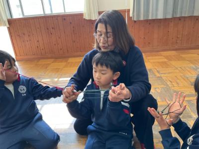 1年生にむかしのあそびを教えてくれました。