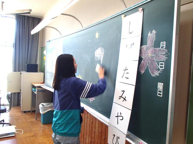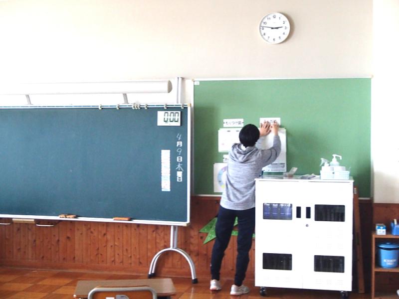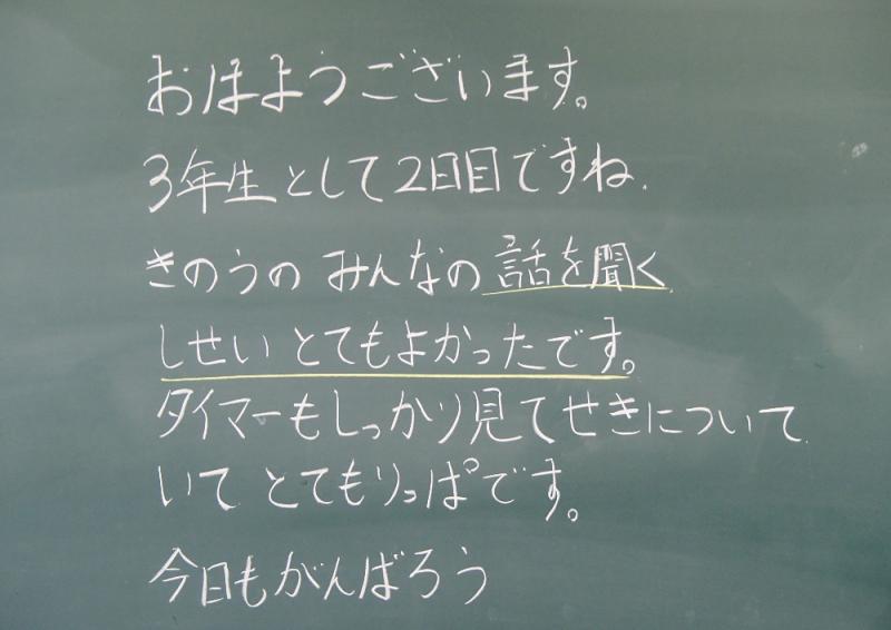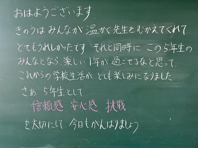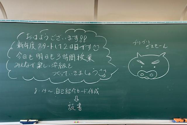 教室の黒板には、それぞれの担任からの素敵なメッセージ。